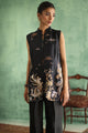 ‘Nauratan’ An array of vibrant and rich hues meticulously put together and intricately hand embellished on this navy shirt on tulle fabric. Paired with a lime green dupatta with kamdani and crushed dhaka pants creating a festive ensemble.